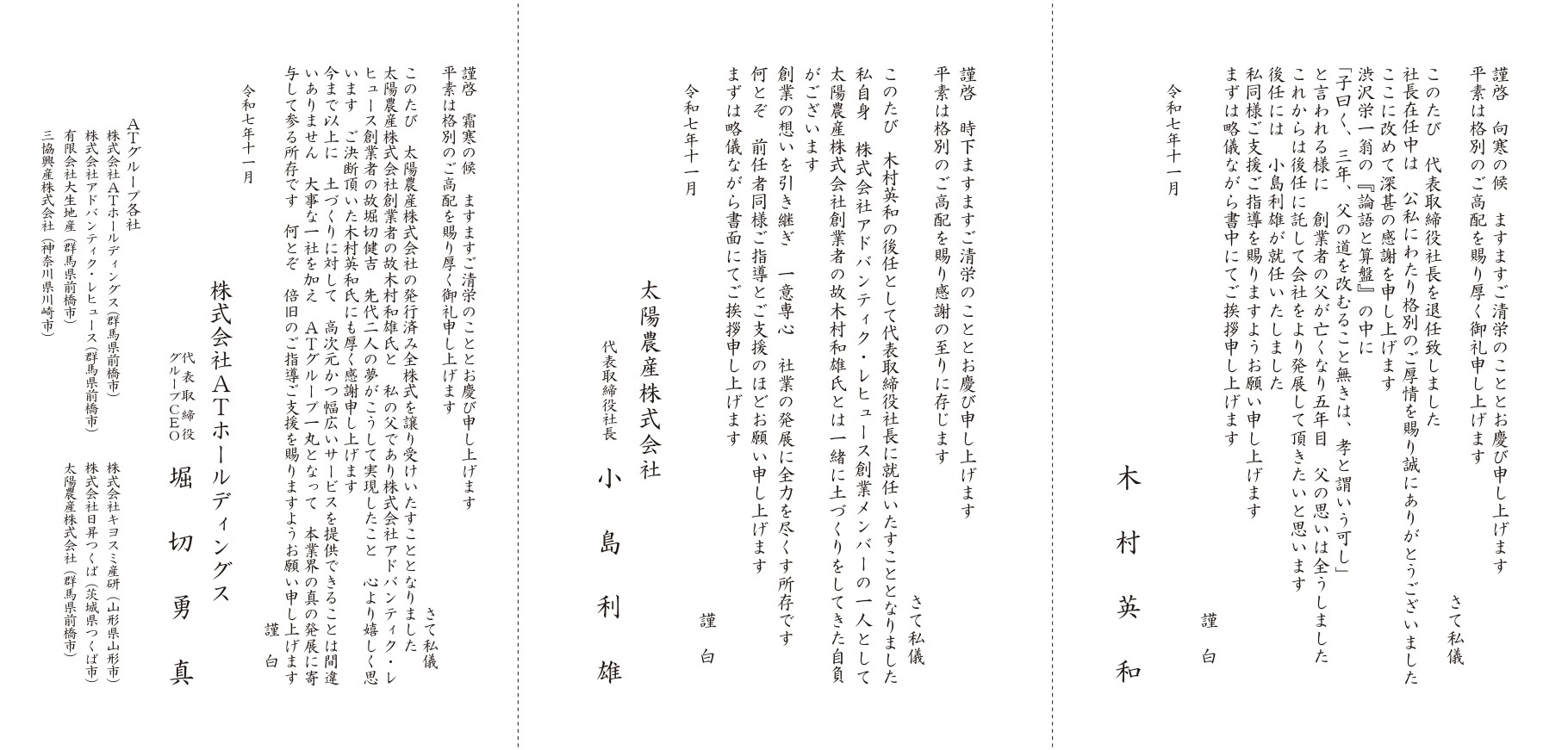 • 2025/11/01太陽農産株式会社 グループ参画のお知らせ